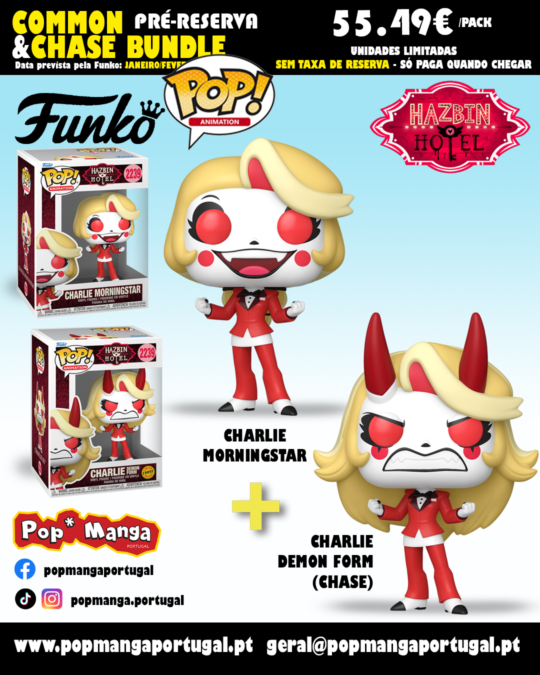 PRÉ-RESERVA - Funko Pop! ANIMATION "Hazbin Hotel": BUNDLE Charlie + CHASE