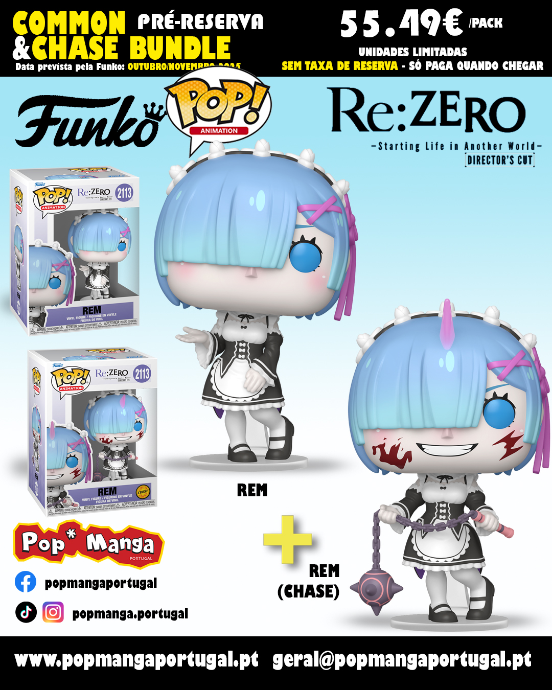 PRÉ-RESERVA - Funko POP! ANIMATION "Re:ZERO – Starting Life in Another World": BUNDLE Rem + CHASE