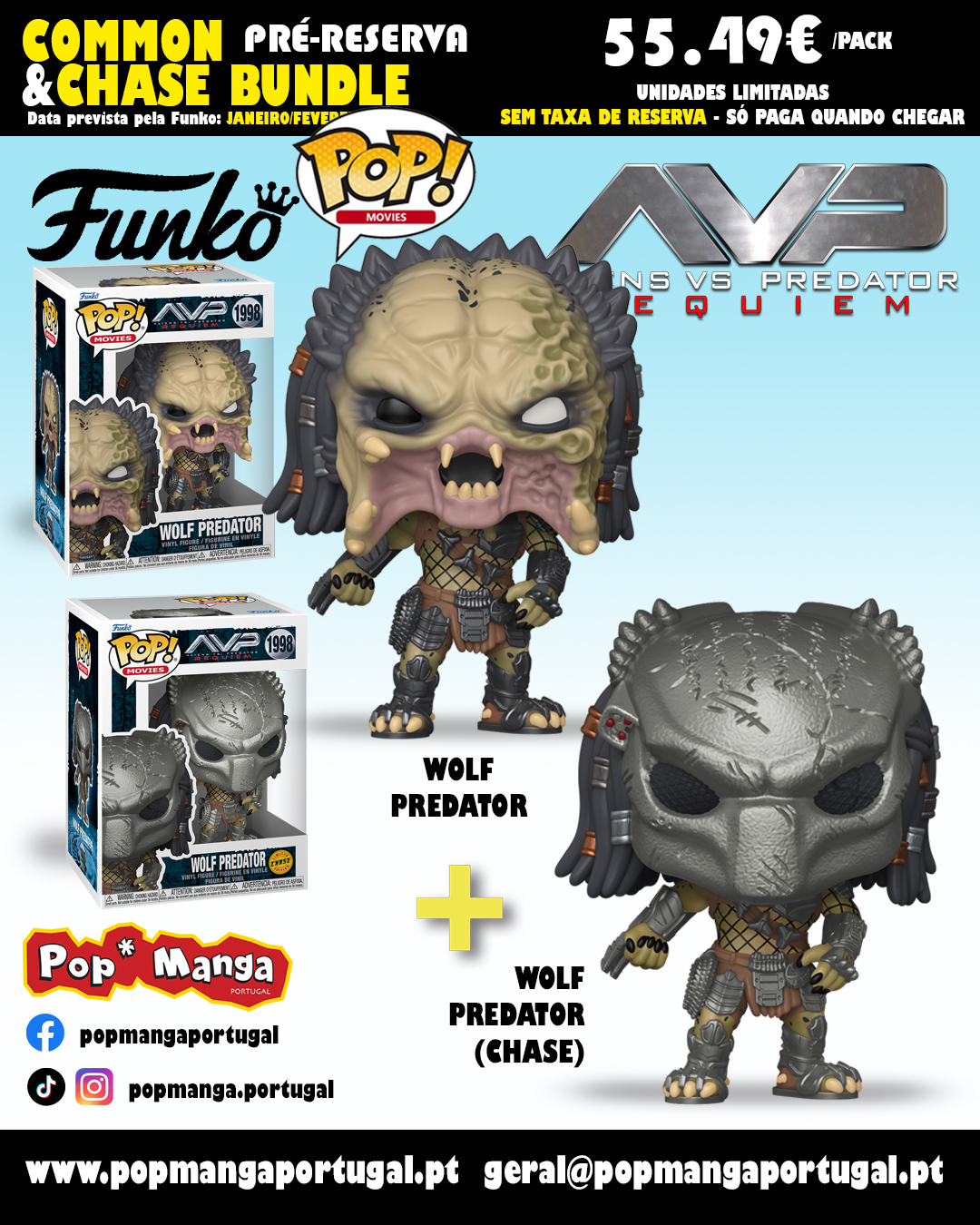 PRÉ-RESERVA - Funko Pop! MOVIES "Aliens vs. Predator: Requiem": BUNDLE Wolf Predator + CHASE