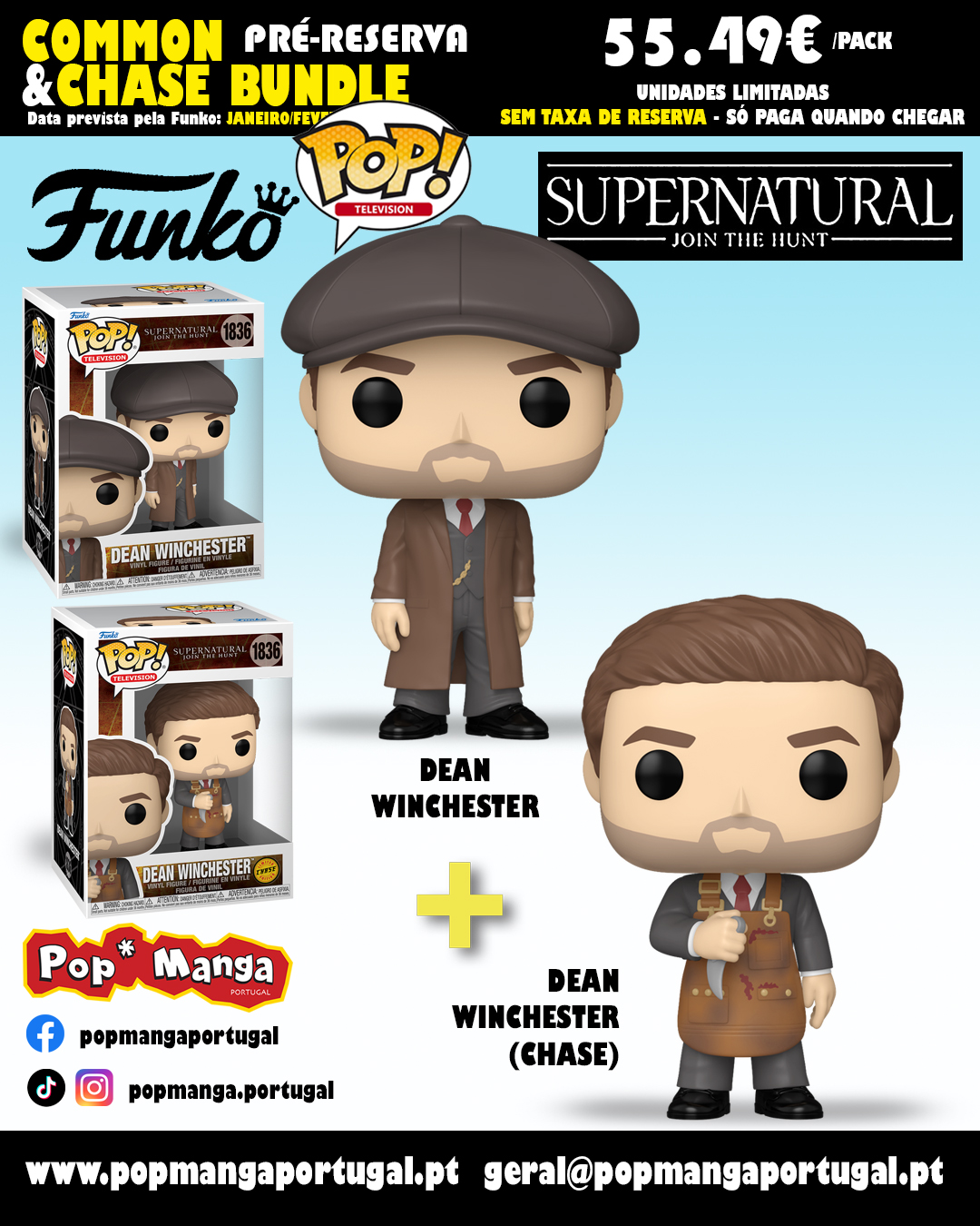 PRÉ-RESERVA - Funko POP! TELEVISION "Supernatural": BUNDLE Dean Winchester + CHASE